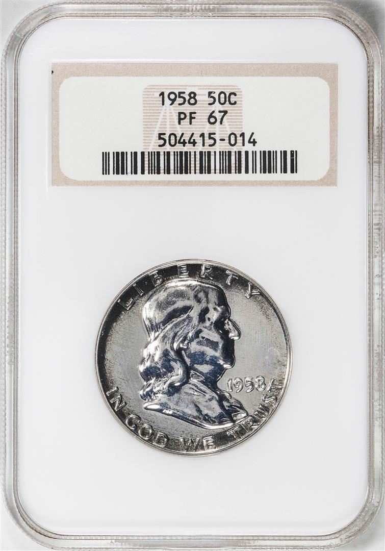 One 1958 Proof Franklin Half Dollar Coin NGC PF67. NGC Certified.