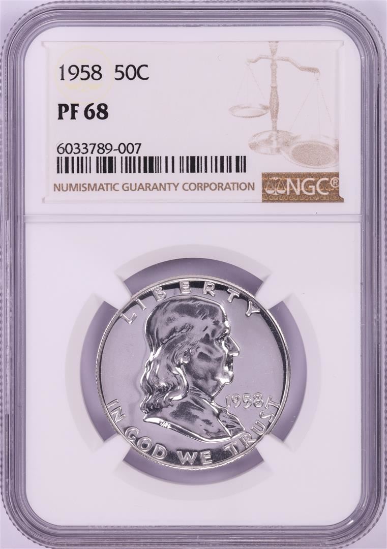 One 1958 Proof Franklin Half Dollar Coin NGC PF68. NGC Certified.
