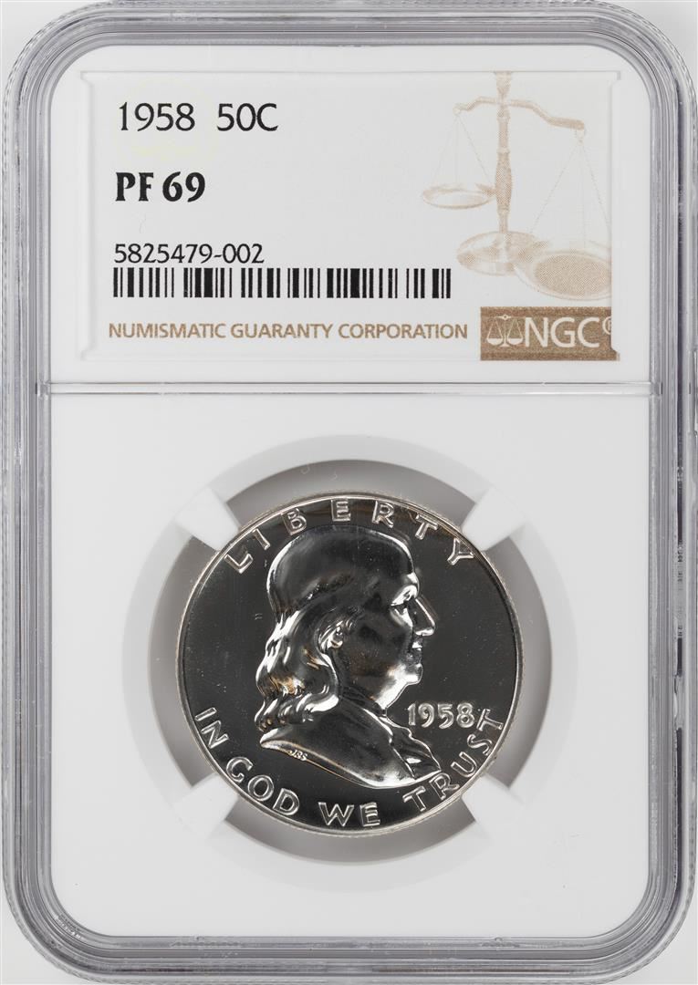 One 1958 Proof Franklin Half Dollar Coin NGC PF69 Graded Top Pop. NGC Certified.