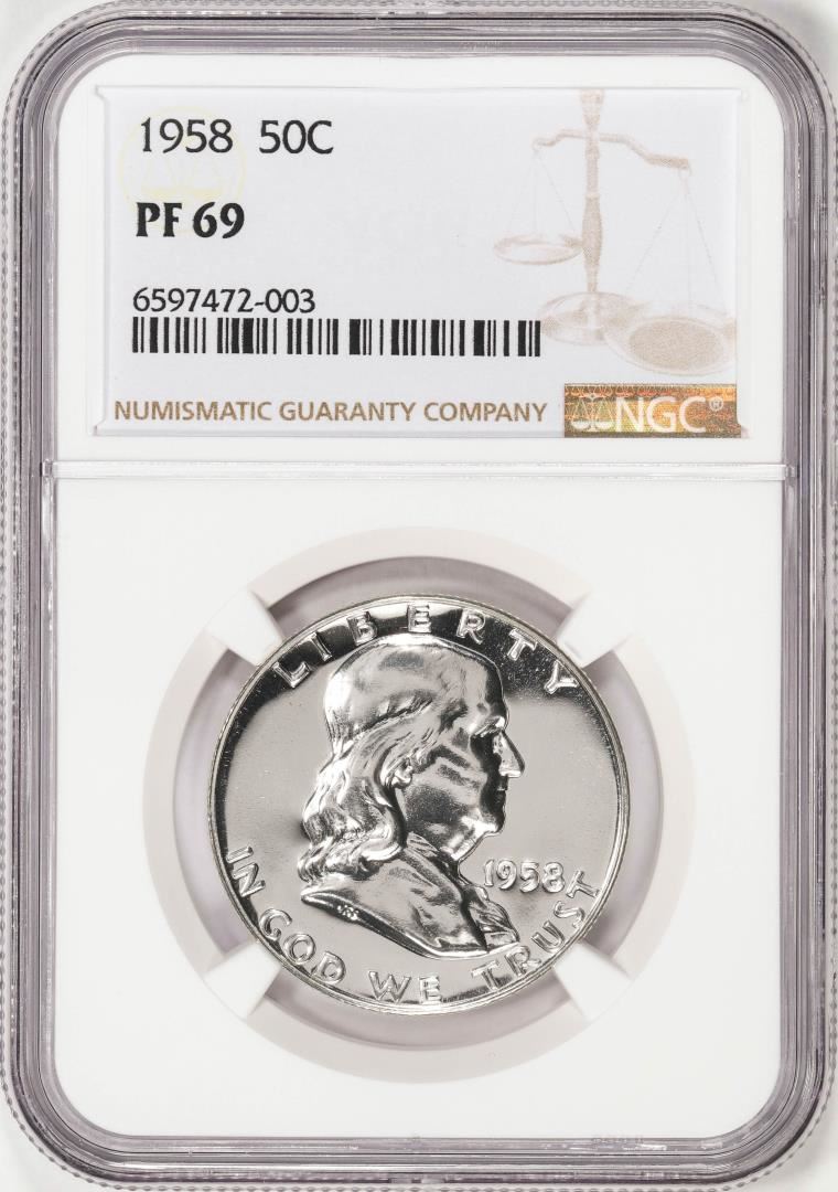 One 1958 Proof Franklin Half Dollar Coin NGC PF69. NGC Certified.