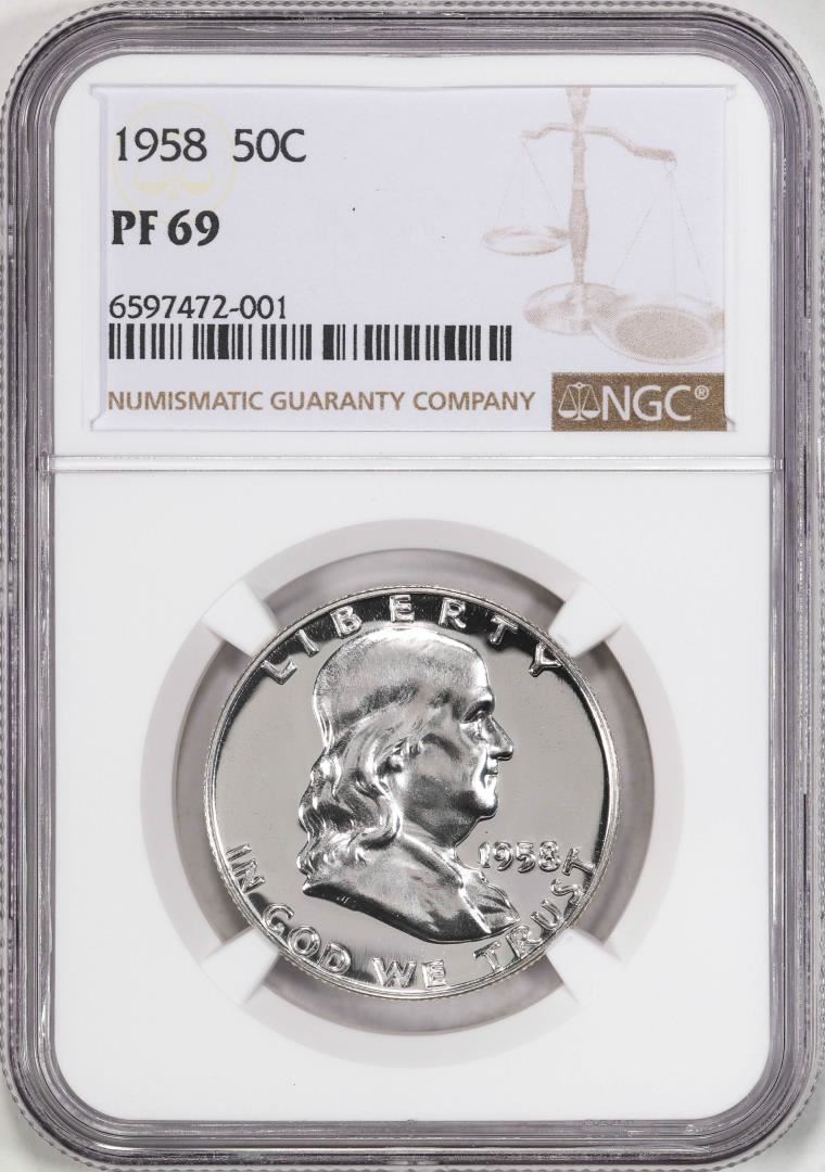 One 1958 Proof Franklin Half Dollar Coin NGC PF69. NGC Certified.