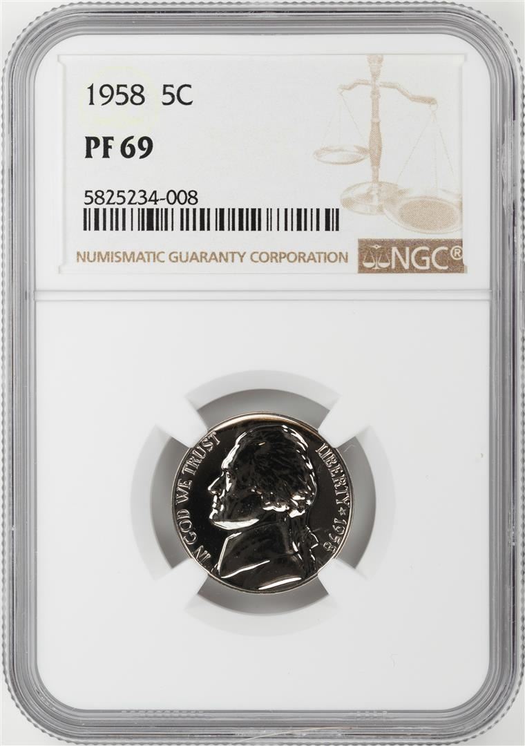 One 1958 Proof Jefferson Nickel Coin NGC PF69. NGC Certified.