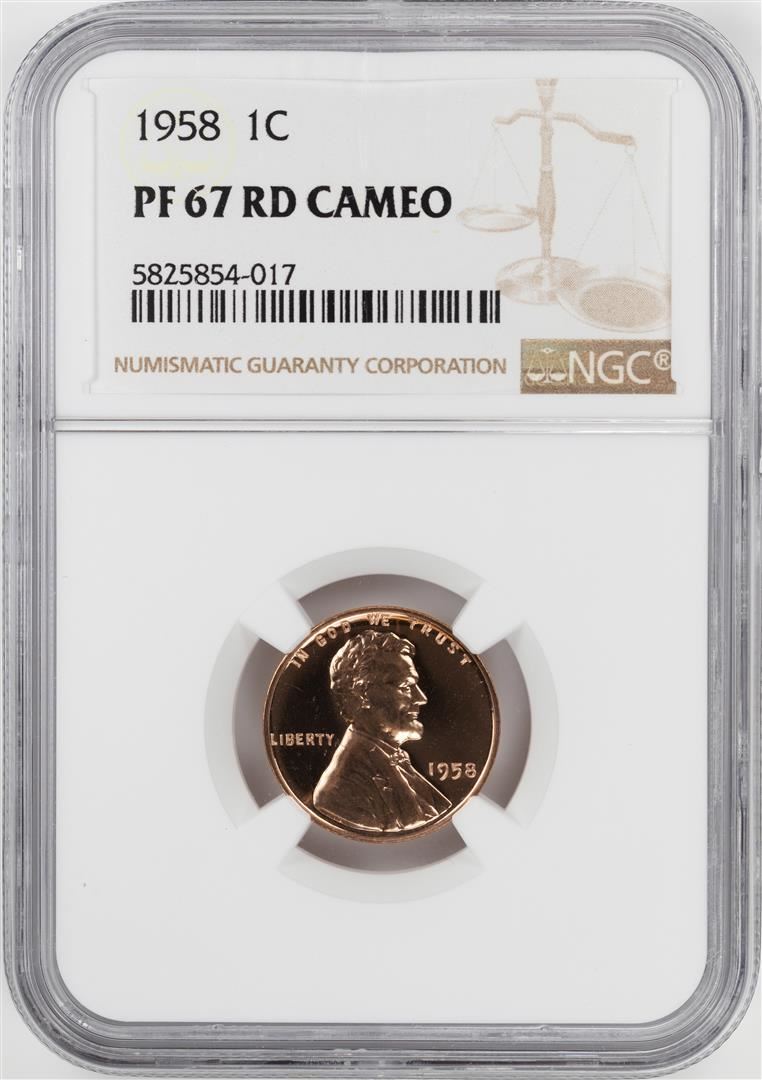 One 1958 Proof Lincoln Wheat Cent Coin NGC PF67RD Cameo. NGC Certified.