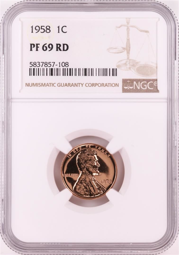 One 1958 Proof Lincoln Wheat Cent Coin NGC PF69RD. NGC Certified.