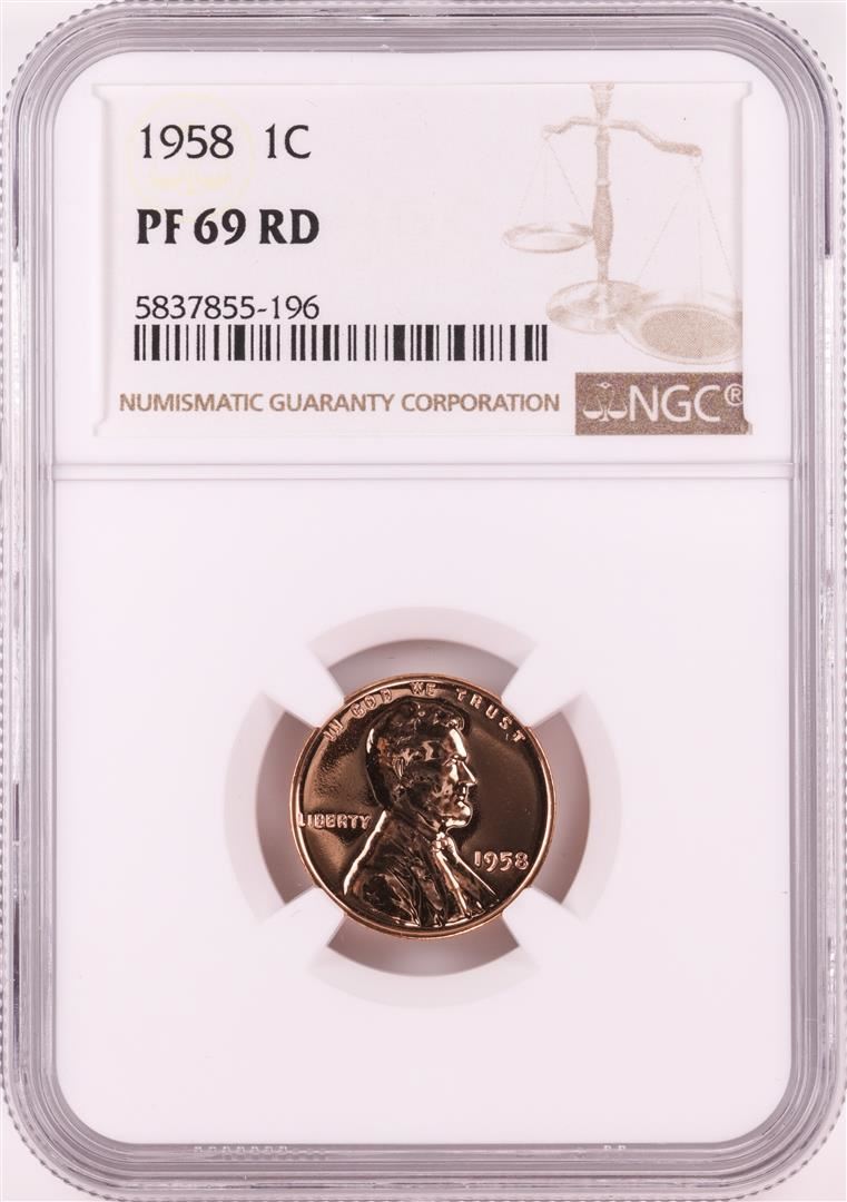 One 1958 Proof Lincoln Wheat Cent Coin NGC PF69RD. NGC Certified.