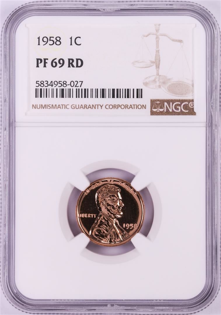 One 1958 Proof Lincoln Wheat Cent Coin NGC PF69RD. NGC Certified.