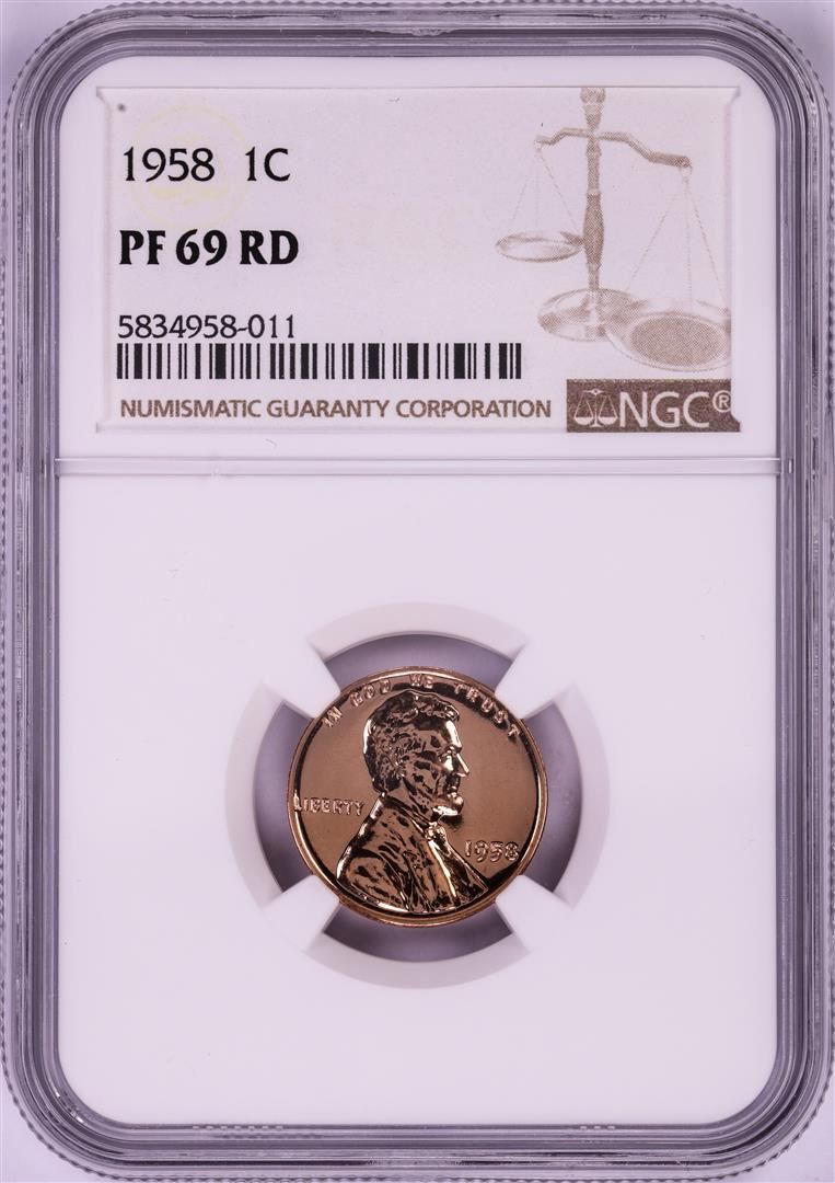 One 1958 Proof Lincoln Wheat Cent Coin NGC PF69RD. NGC Certified.