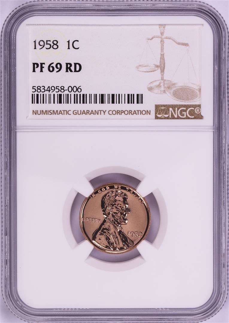 One 1958 Proof Lincoln Wheat Cent Coin NGC PF69RD. NGC Certified.