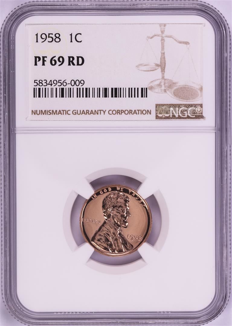 One 1958 Proof Lincoln Wheat Cent Coin NGC PF69RD. NGC Certified.