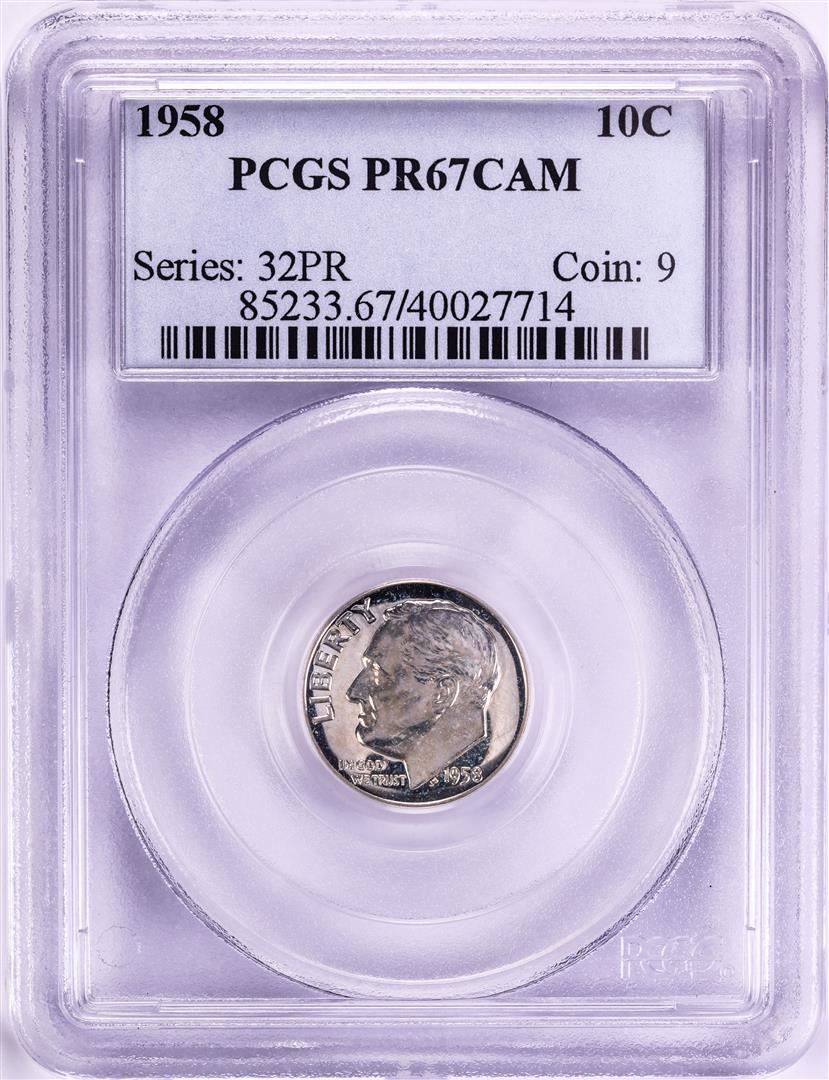 One 1958 Proof Roosevelt Dime Coin PCGS PR67CAM. PCGS Graded.