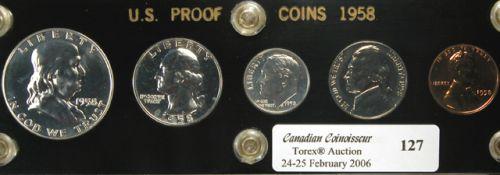 1958 Proof Set in Capital Holder. Full red cent, untoned silver