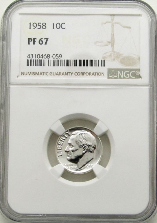 1958 ROOSEVELT DIME PF 67