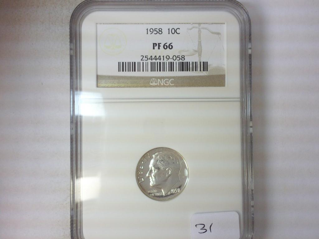 1958 SILVER ROOSEVELT DIME NGC PF66