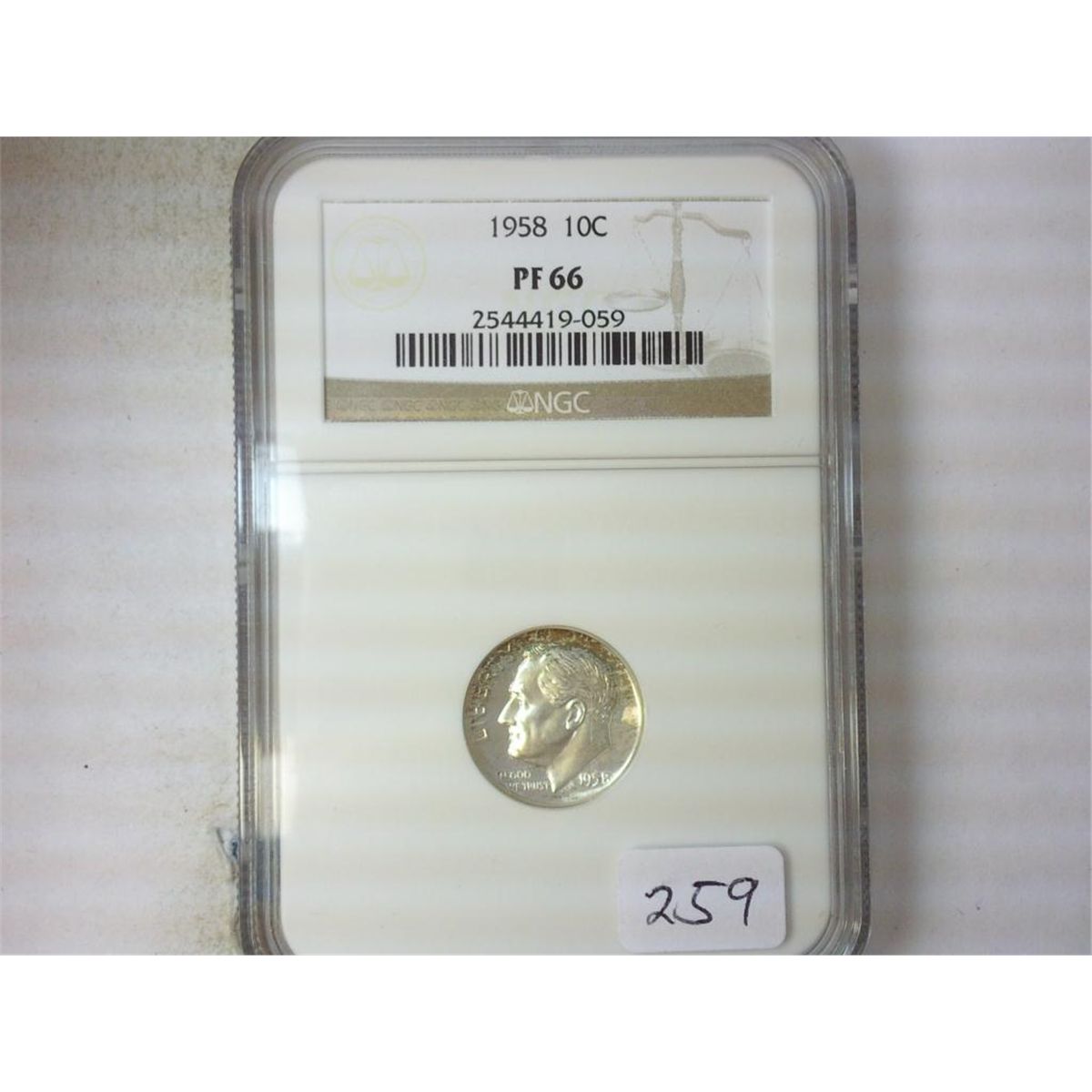 1958 SILVER ROOSEVELT DIME NGC PF66