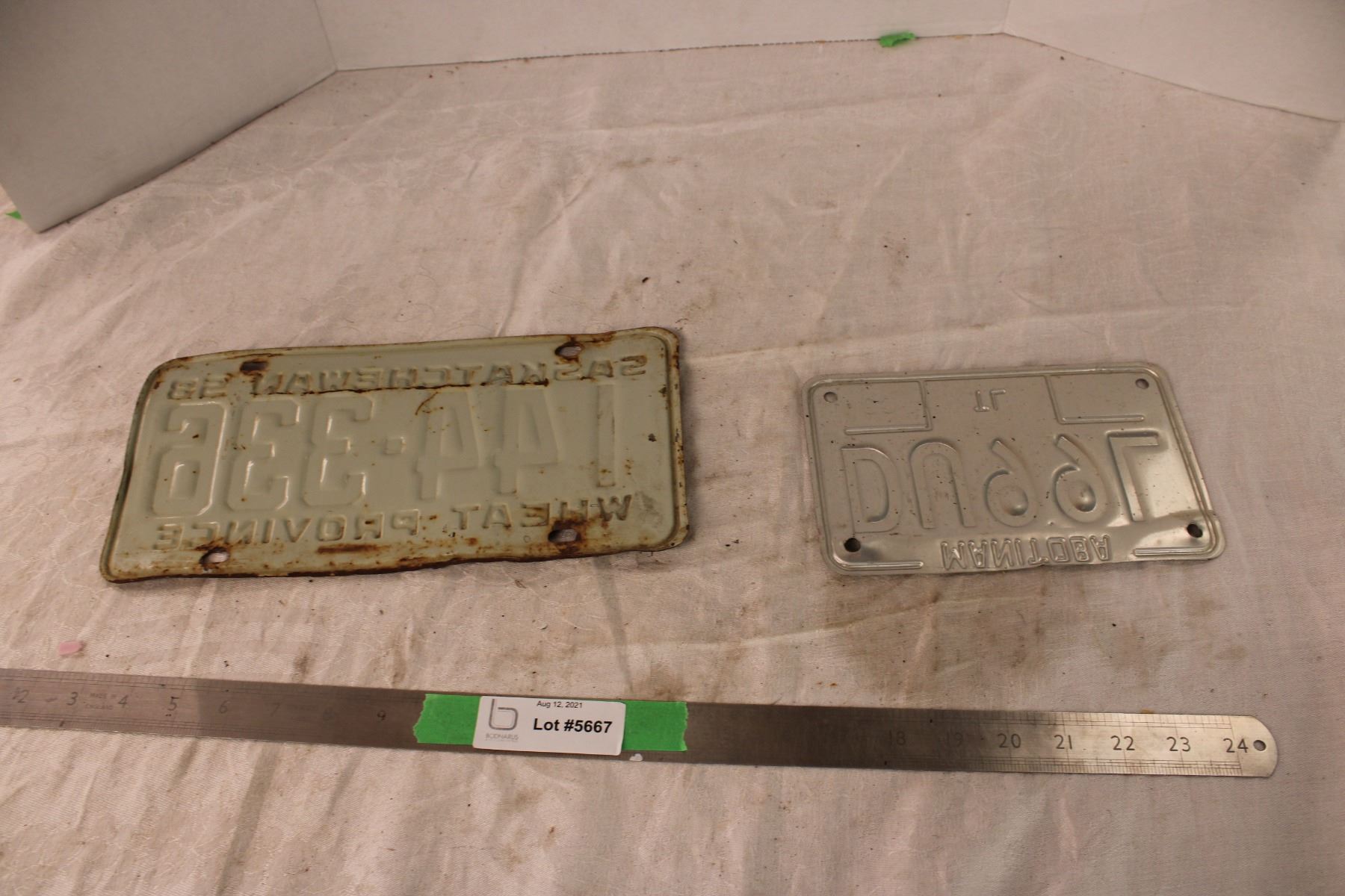 1958 Sask Licence Plate and 1992 Manitoba Licence Plate