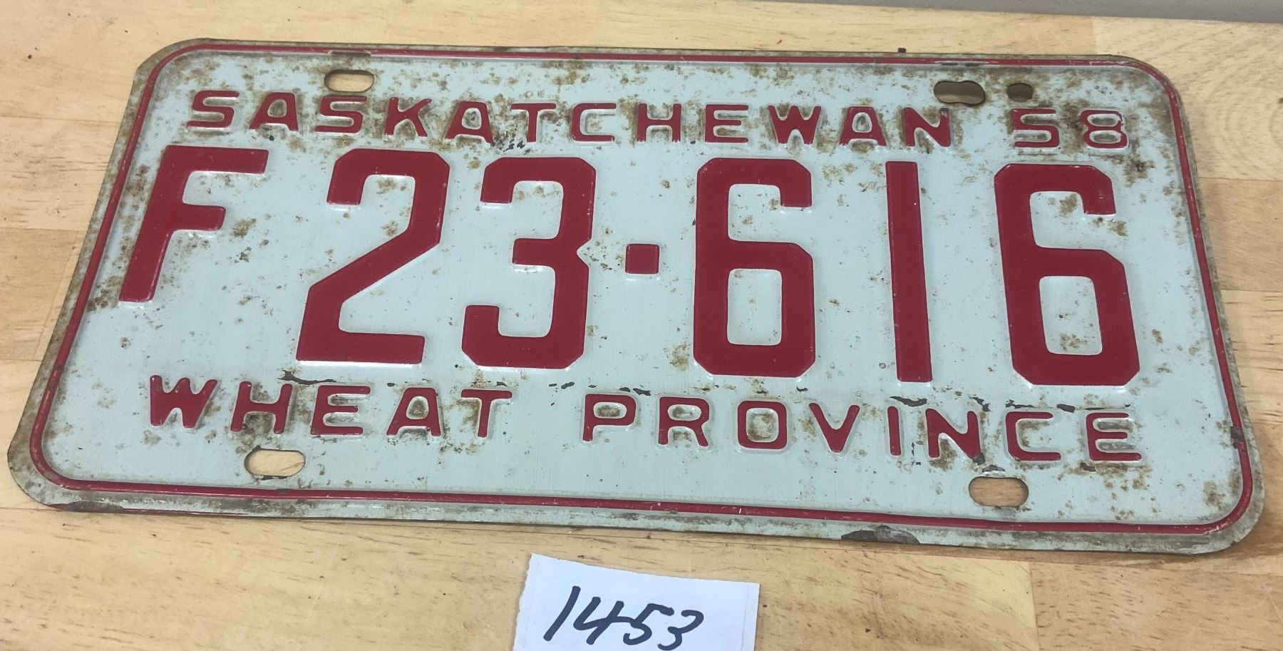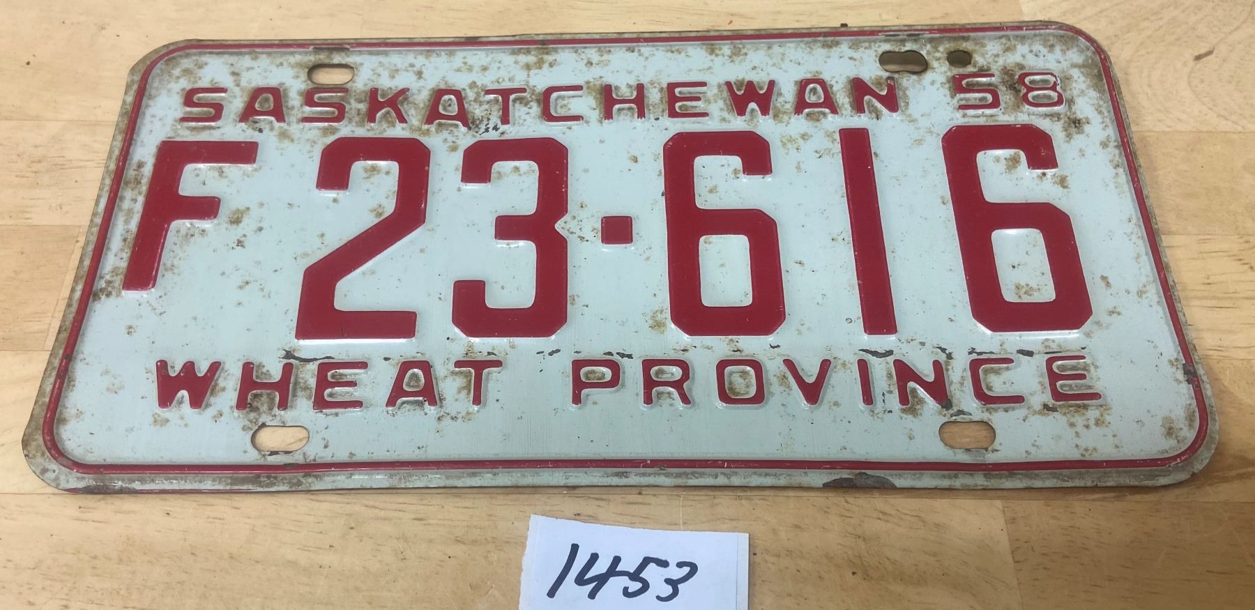 1958 Sask licence plate (lots 1452-1455 all have the same number)
