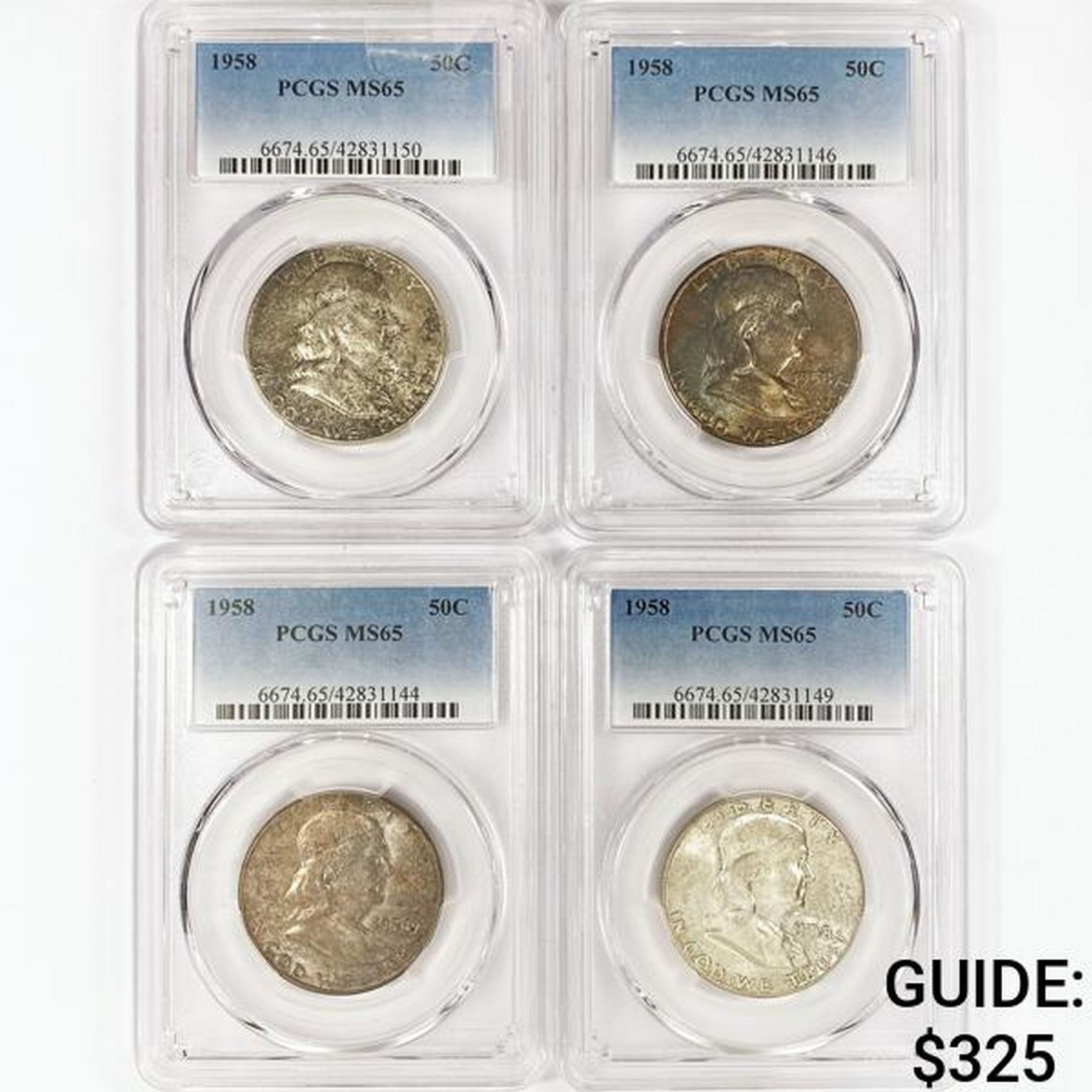 1958 Set (4) Franklin Half Dollar PCGS MS65