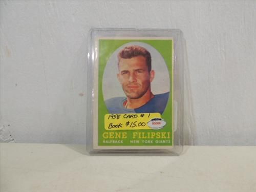 1958 TOPPS #1 FOOTBALL ROOKIE CARD GENE FILIPSKI. AS SHOWN. VIEW PICTURE FOR DETAIL.