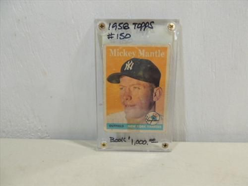 1958 TOPPS #150 BASEBALL PLAYER CARD MICKEY MANTLE. TAPE DAMAGE ON FRONT AND BACK. AS SHOWN. VIEW PICTURE FOR DETAIL.