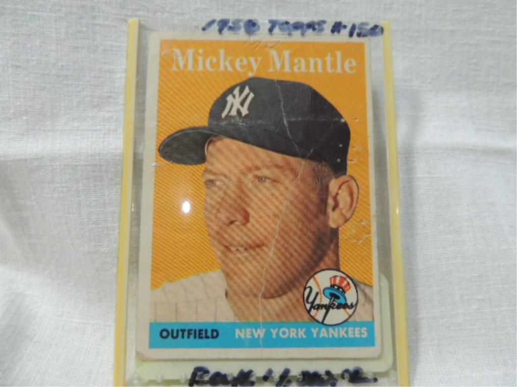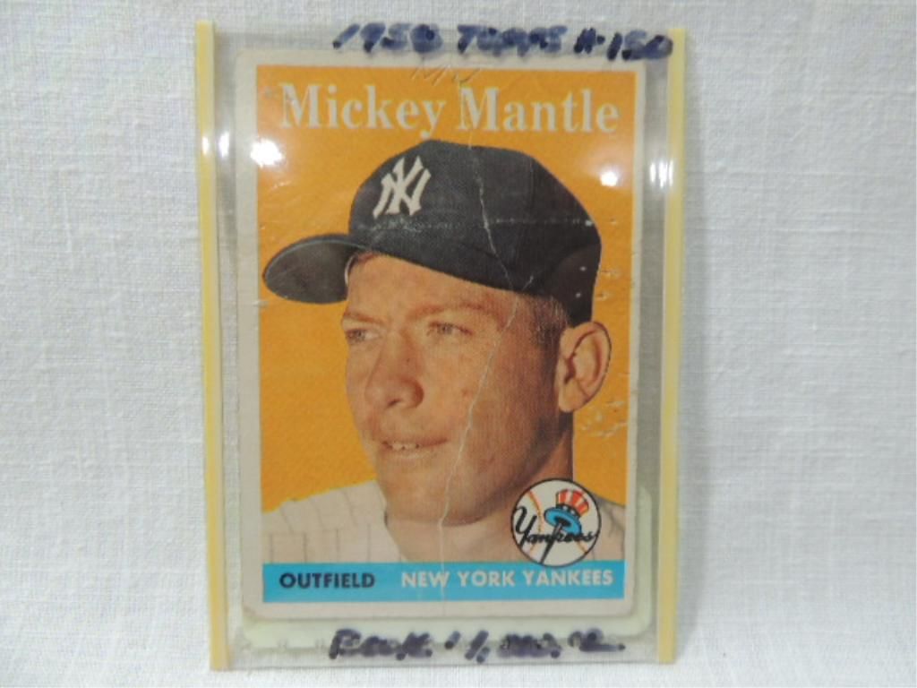 1958 TOPPS #150 BASEBALL PLAYER CARD MICKEY MANTLE. AS SHOWN. VIEW PICTURE FOR DETAIL.