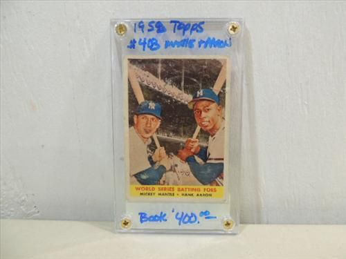 1958 TOPPS #418 BASEBALL PLAYER CARD MICKEY MANTLE & HANK AARON. AS SHOWN. VIEW PICTURE FOR DETAIL.