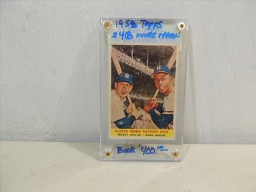 1958 TOPPS #418 BASEBALL PLAYER CARD MICKEY MANTLE & HANK AARON. AS SHOWN. VIEW PICTURE FOR DETAIL.