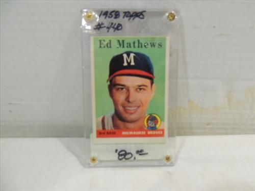 1958 TOPPS #440 BASEBALL PLAYER CARD ED MATHEWS. OFF CENTER. AS SHOWN. VIEW PICTURE FOR DETAIL.