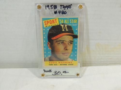 1958 TOPPS #480 BASEBALL PLAYER CARD EDDIE MATHEWS. AS SHOWN. VIEW PICTURE FOR DETAIL.