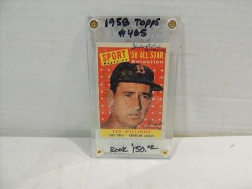 1958 TOPPS #485 BASEBALL PLAYER CARD TED WILLIAMS. WRITING ON FRONT OF CARD. AS SHOWN. VIEW PICTURE FOR DETAIL.