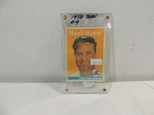 1958 TOPPS #9 BASEBALL PLAYER CARD HANK BAUER. AS SHOWN. VIEW PICTURE FOR DETAIL.