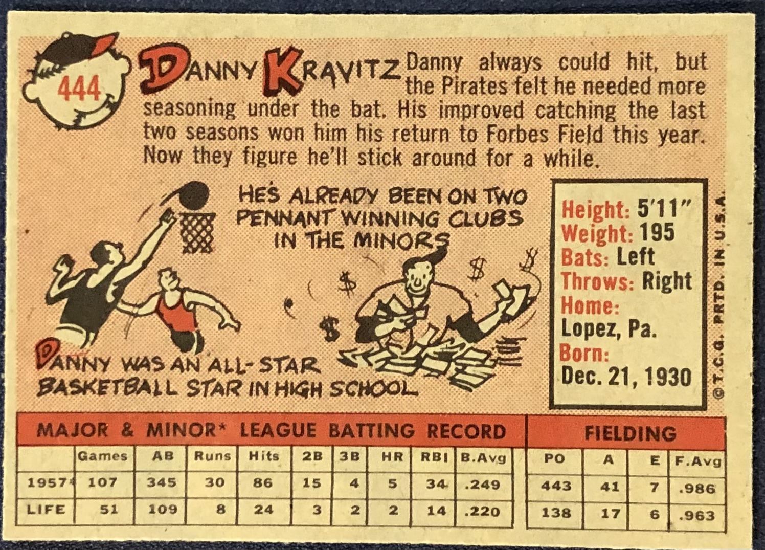 Card #444 MLB, baseball, vintage