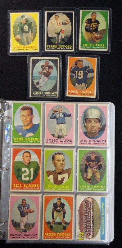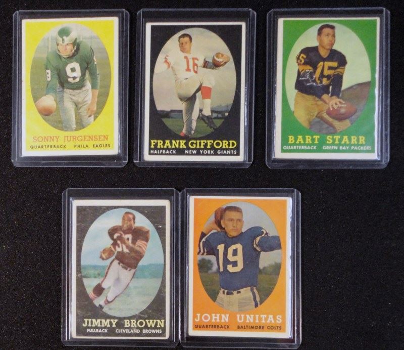 #22 UNITAS VGEX, #62 BROWN GOOD, #66 STARR FAIR HOLE, #73 GIFFORD VG+, #90 JURGENSEN VG, REST MOSTLY EX, MOST BACKS ARE UNSCRATCHED, EST $700-$800