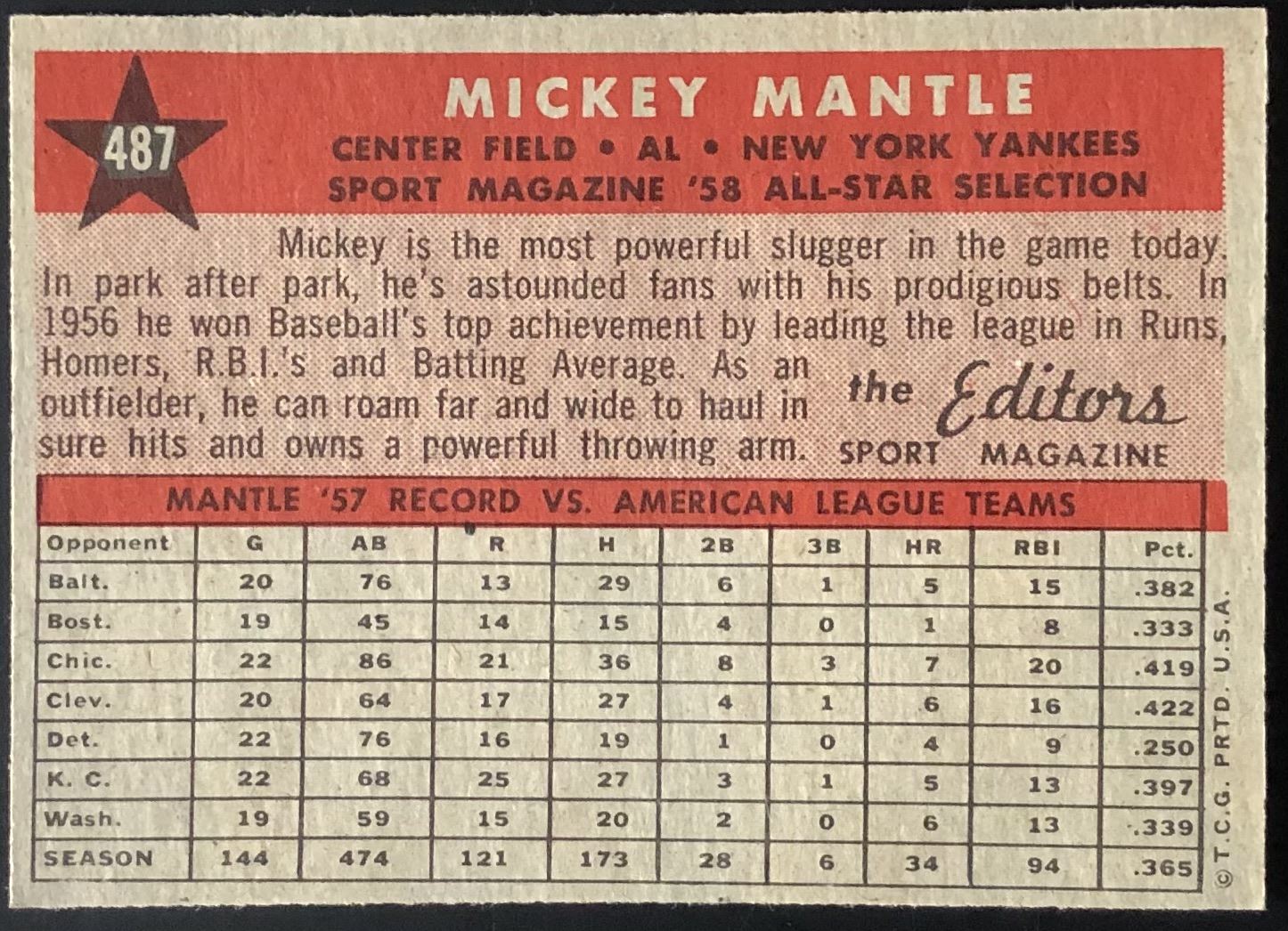 Card #487 vintage, MLB, baseball, hall of fame