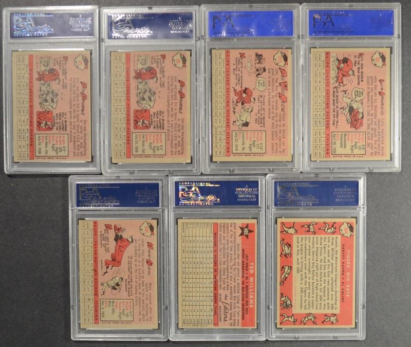 2-#25 DRYSDALE PSA 2 & 3, #85 YELLOW TEAM APARICIO PSA 5, #304 PSA 5, #375 PEEWEE REESE PSA 4, #434 KUENN PSA 5.5, #485 WILLIAMS PSA 5 ESTIMATE $200-$230