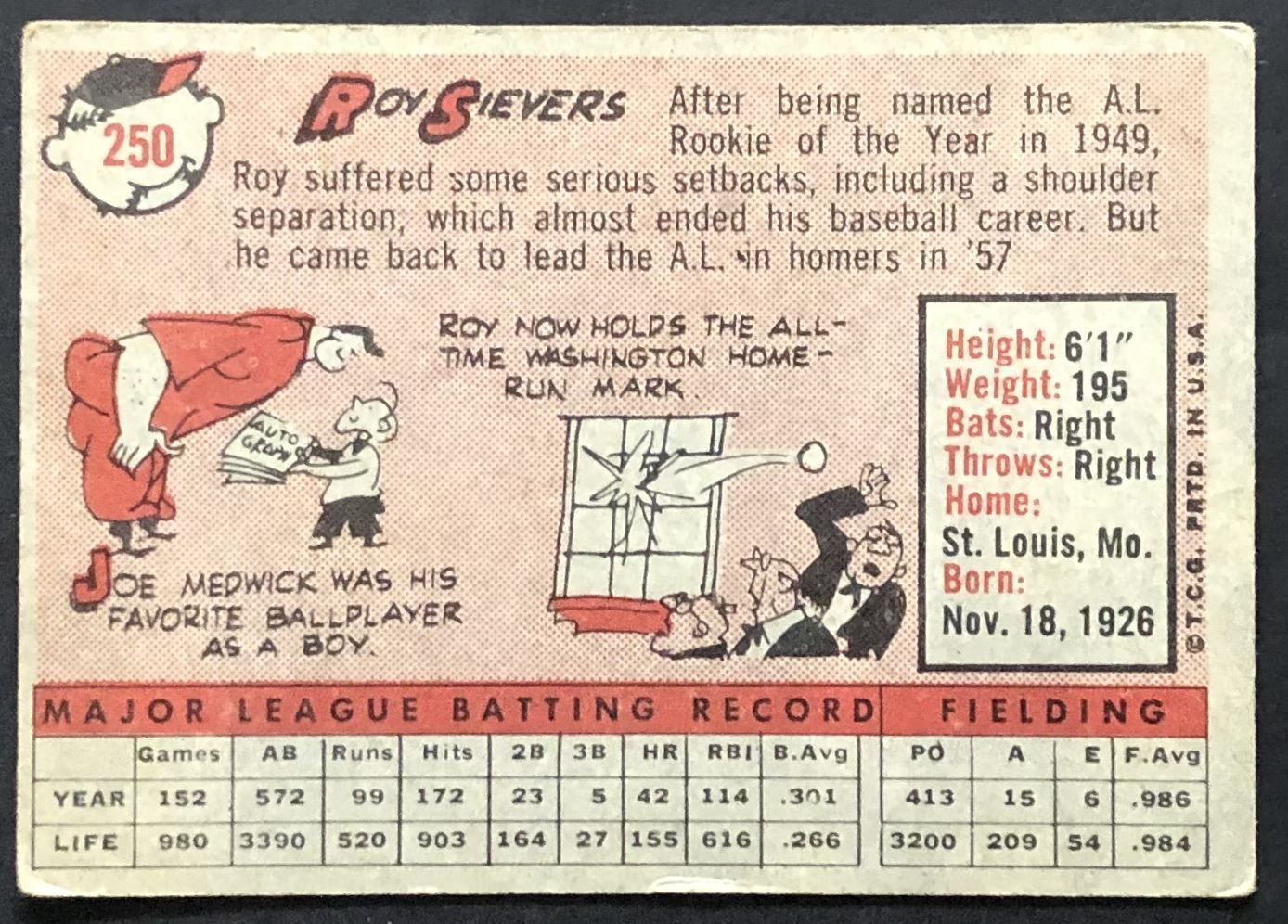 Card #250 baseball, MLB, hall of fame, vintage