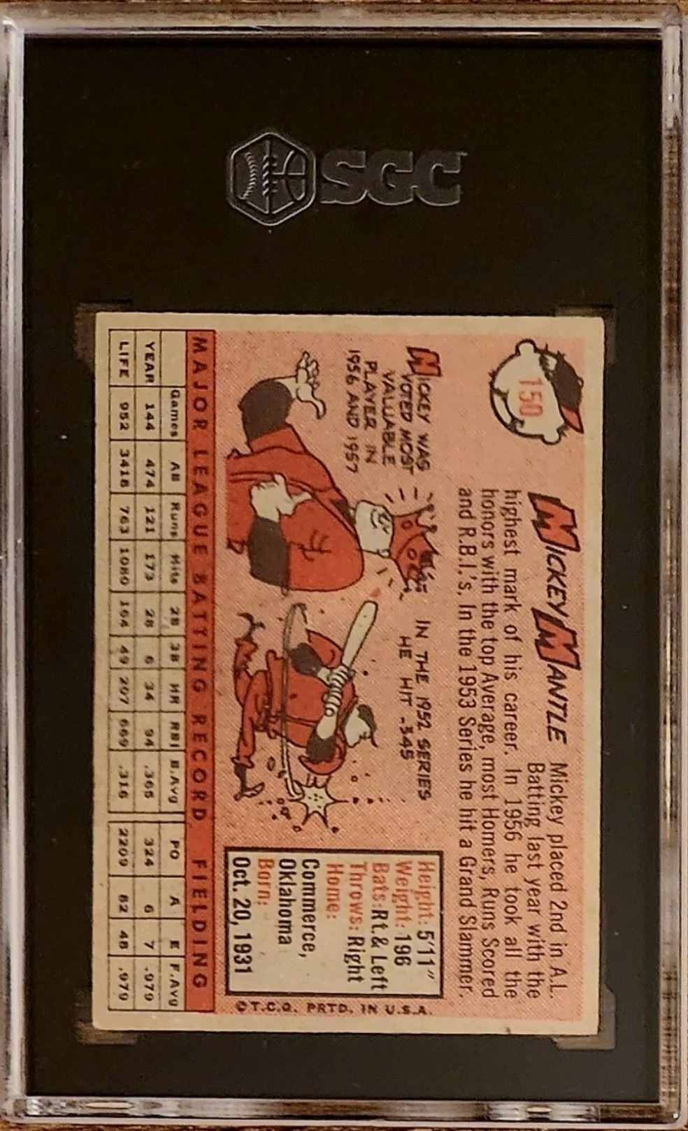 One 1958 Topps #150 Mickey Mantle SGC 5EX.