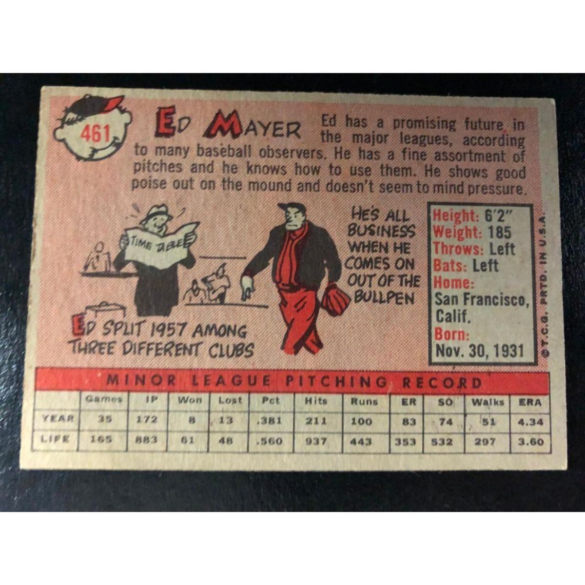 A 1958 Topps #461 Ed Mayer RC Rookie Cubs Baseball Card. Great Addition For Any Rookie Card Collection. View Photos For Further Details.