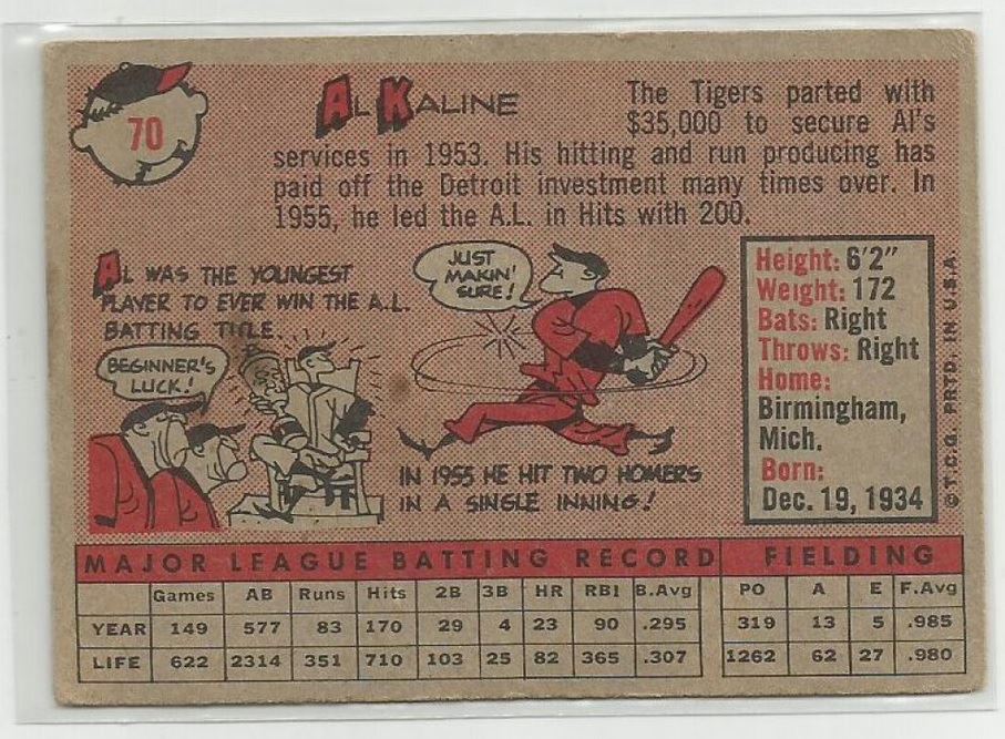This Vintage 1958 Topps Al Kaline Card is in Very Good Condition.