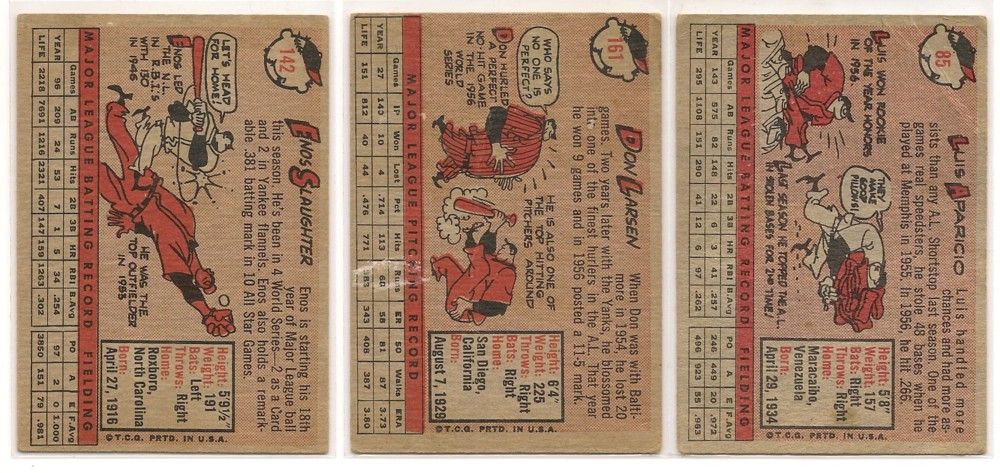 1958 Topps Lot of 3- Slaughter, Larsen, Aparicio