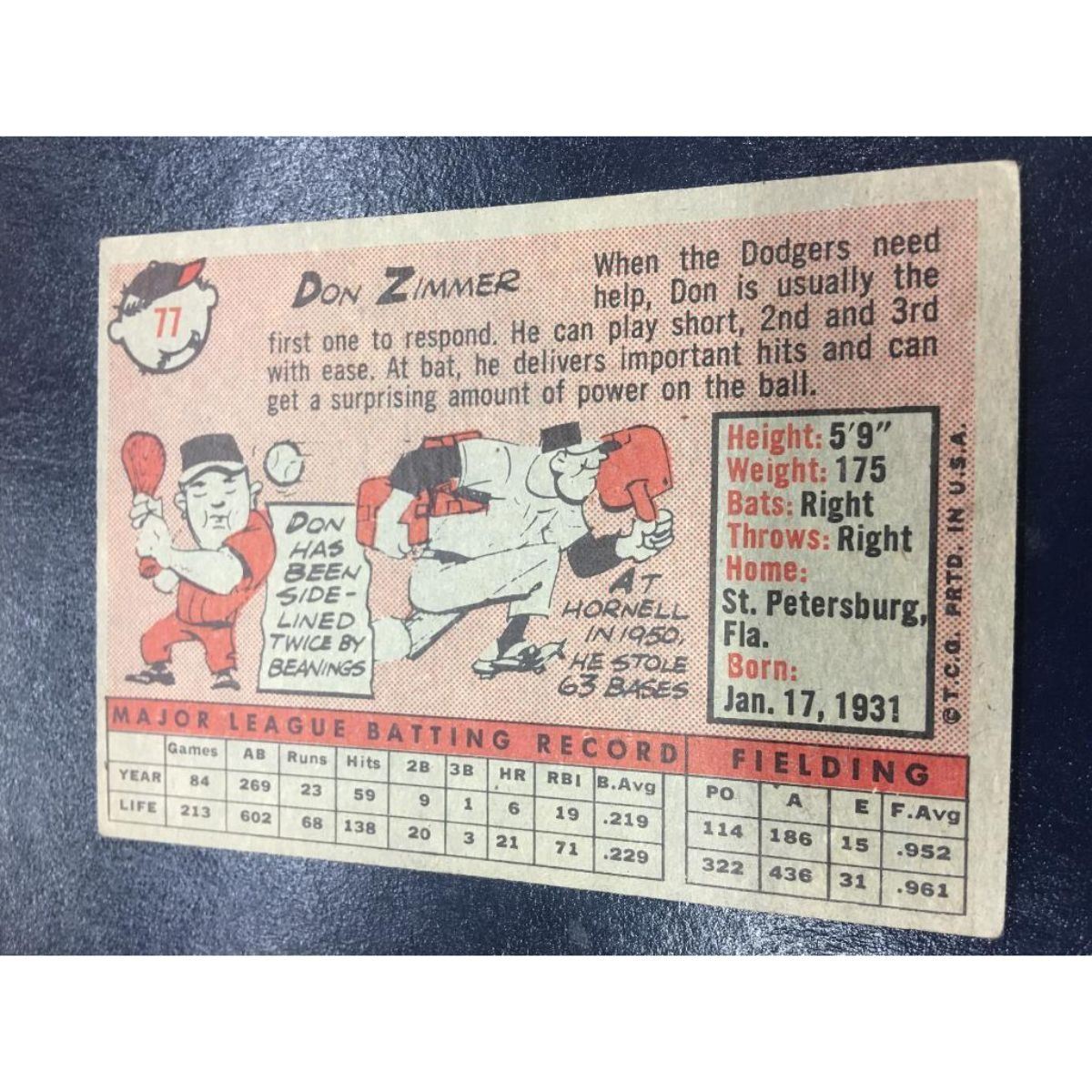 A 1958 Topps Set DON ZIMMER #77 LOS ANGELES DODGERS Baseball Card. Excellent Low Numbered Card From the 1958 Topps Set. View Photos For Further Details.