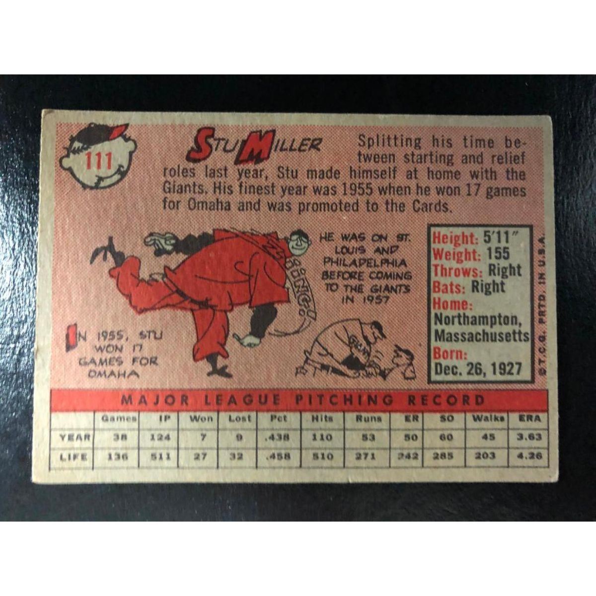 A 1958 Topps STU MILLER #111 SAN Francisco Giants Baseball Card. View Photo For Details