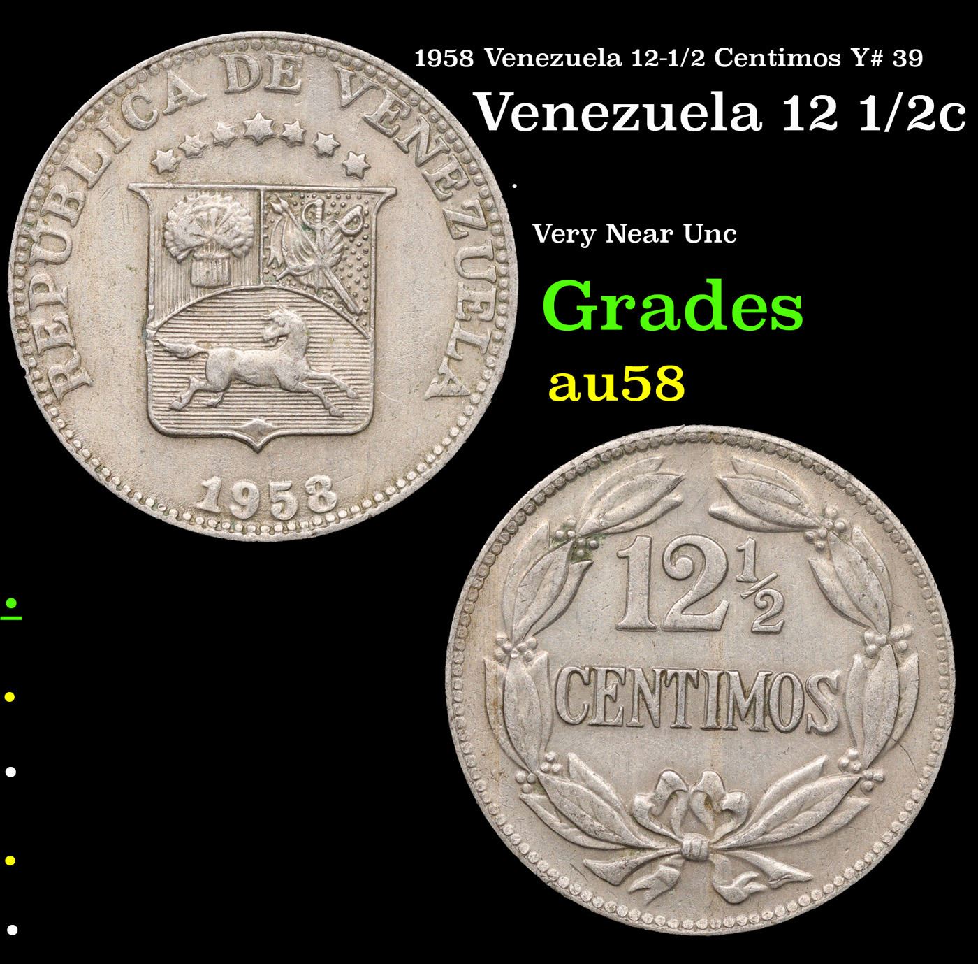 1958 Venezuela 12-1/2 Centimos Y# 39 Grades Choice AU/BU Slider.