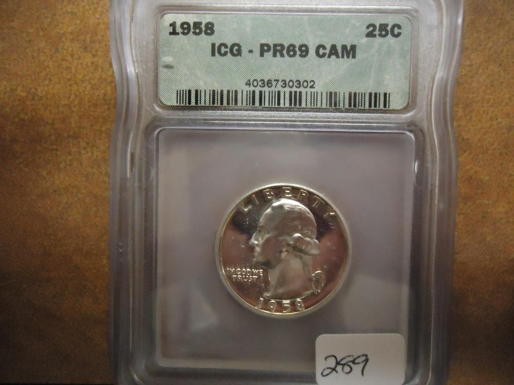 1958 WASHINGTON SILVER QUARTER ICG PR69 CAM