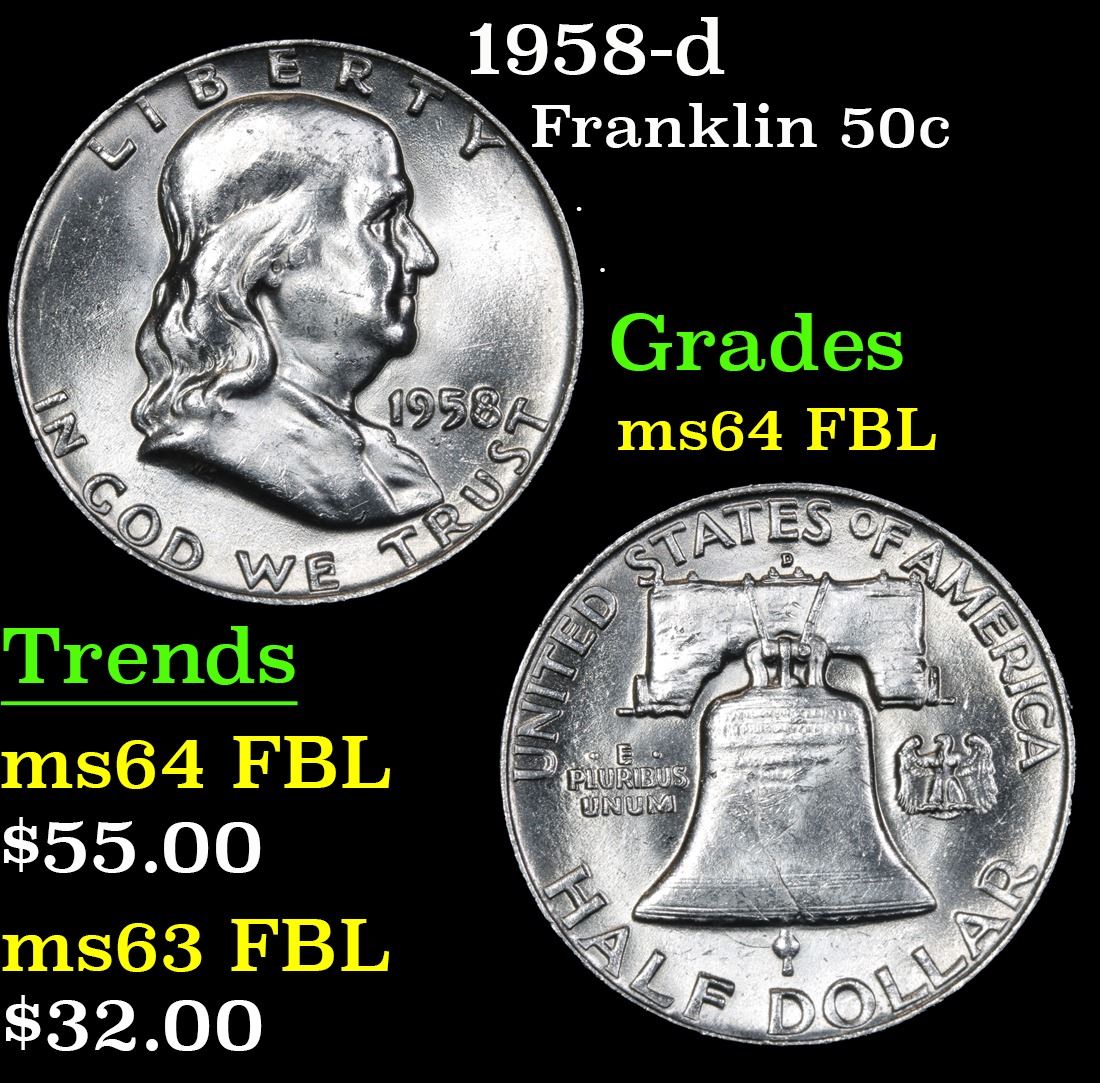 1958-d . . Franklin Half Dollar 50c Grades Choice Unc FBL.