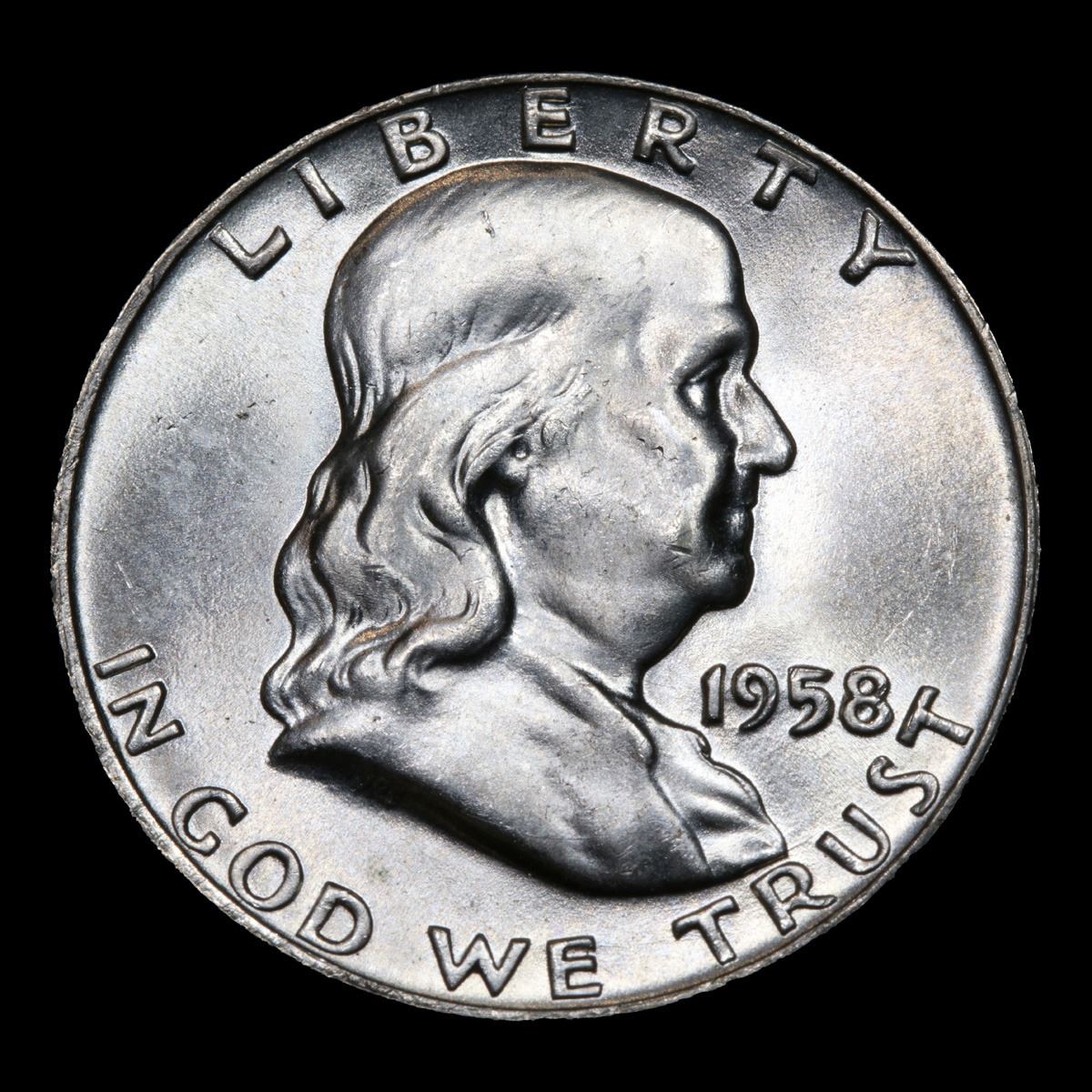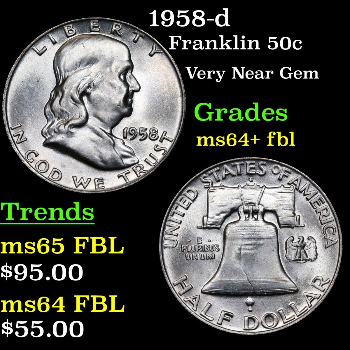1958-d . Very Near Gem Franklin Half Dollar 50c Grades Choice Unc+ FBL.