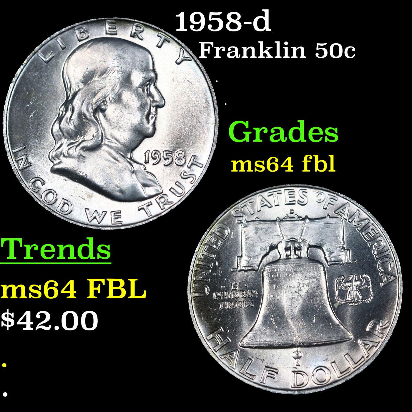 1958-d Franklin Half Dollar 50c Grades Choice Unc FBL.