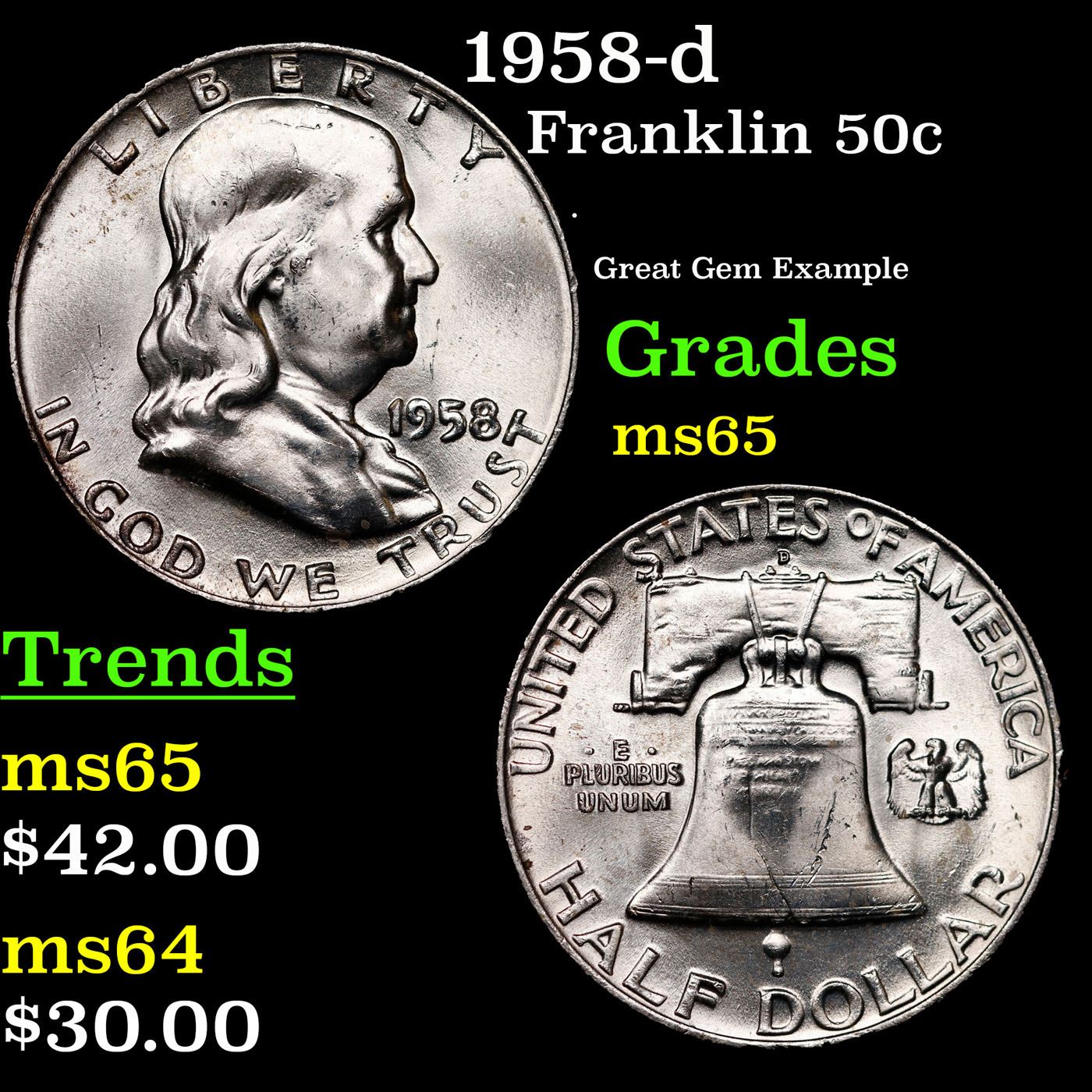 1958-d Franklin Half Dollar 50c Grades GEM Unc.