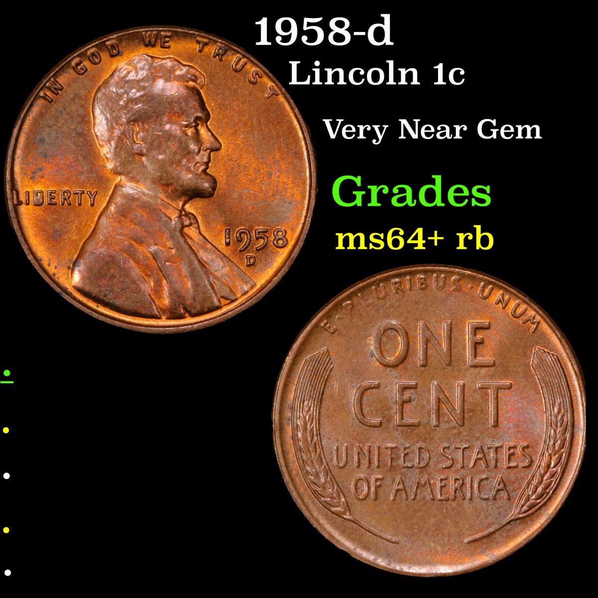 1958-d . Very Near Gem Lincoln Cent 1c Grades Choice+ Unc RB.