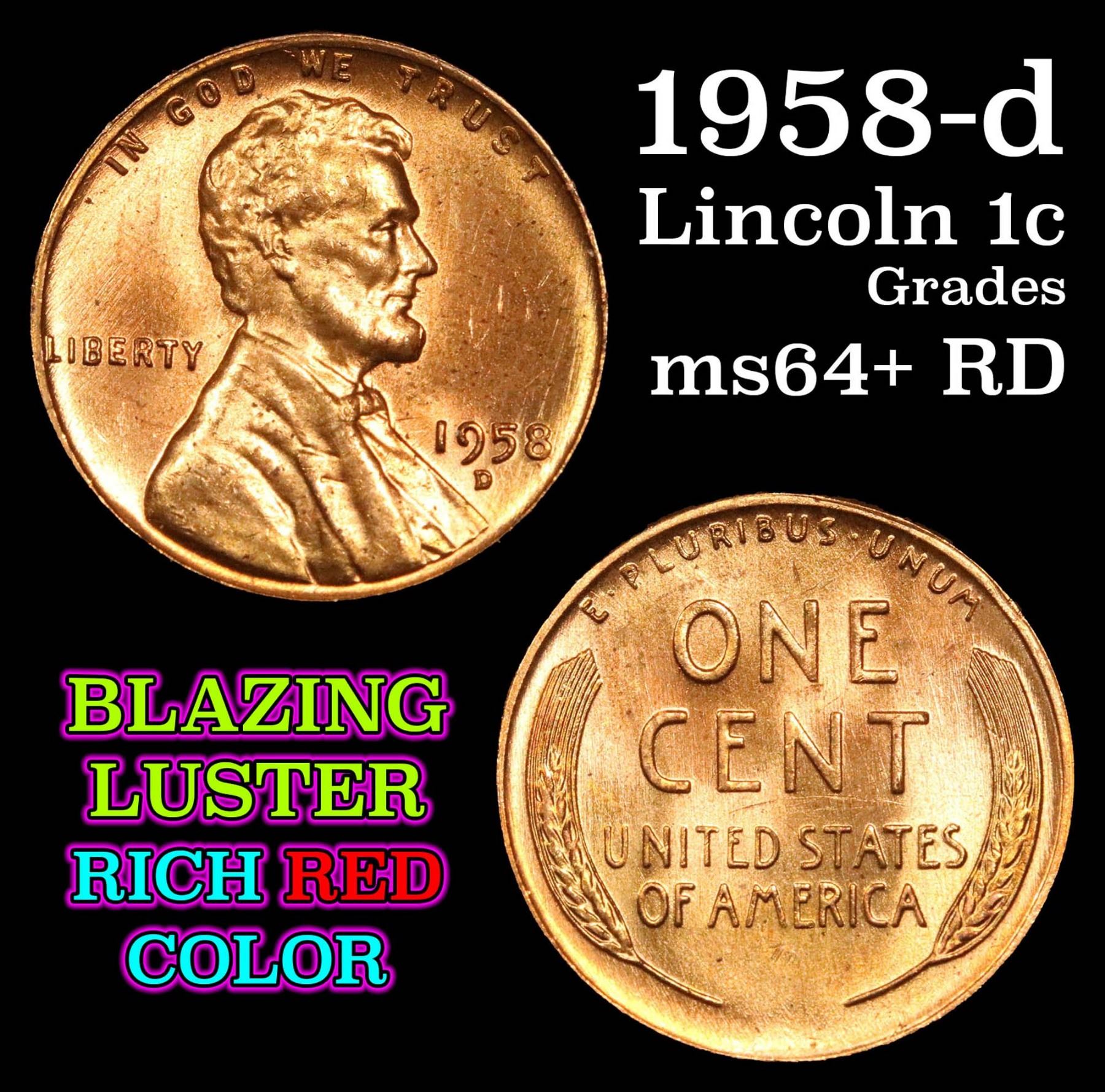 1958-d Lincoln Cent 1c Grades Choice+ Unc RD.