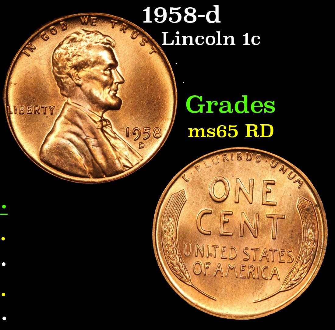 1958-d Lincoln Cent 1c Grades GEM Unc RD.